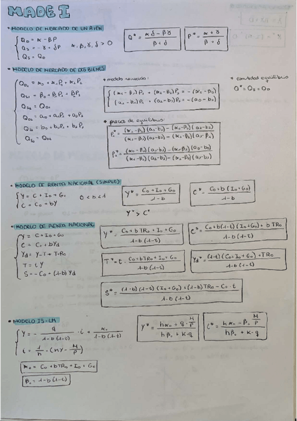 Incluye: Modelos de mercado, renta nacional, diagonalización de matrices, modelo IS-LM y modelo Input-Output de Leontief