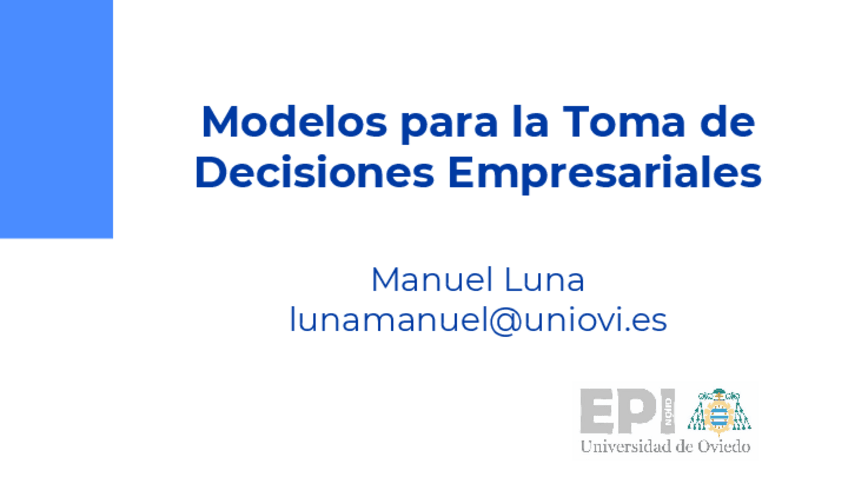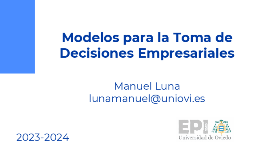 He publicado nuevos apuntes de 3º Modelos para la Toma de Decisiones Empresariales: decisiones_tema_1.pdf