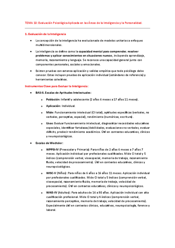 Tema 10: Evaluación de inteligencia y personalidad