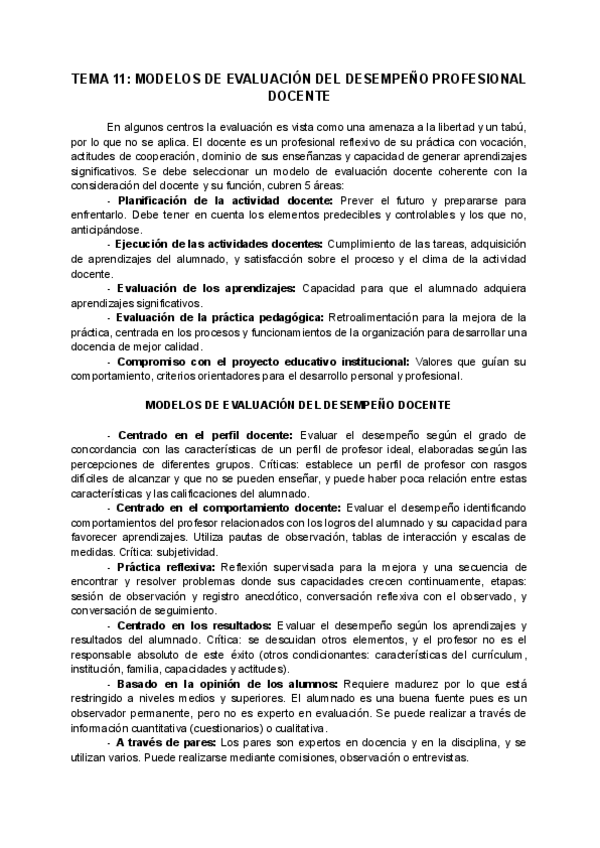 TEMA 10: Evaluación docente y calidad educativa. TEMA 11: Modelos de evaluación del desempeño profesional docente. TEMA 12: La evaluación de las competencias docentes (objeto, finalidad y procedimiento).