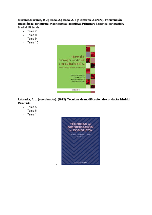 He publicado nuevos apuntes de 4º Modificación y Terapia de Conducta: BIBLIOGRAFIA.pdf