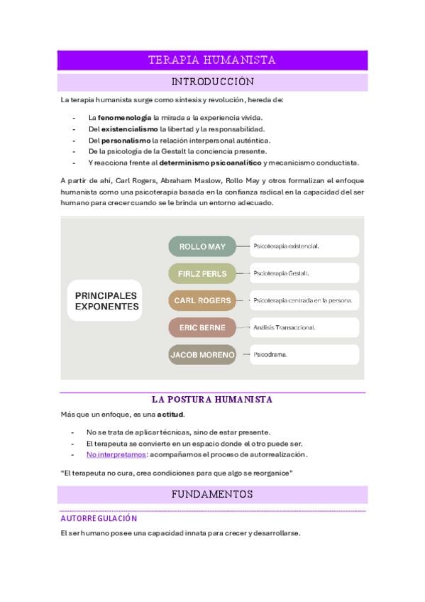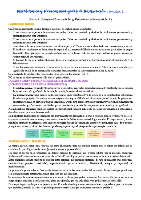 Apuntes diapositivas Unidad 2: Terapias de 2º generación => Terapia humanista y terapia psicodinámica