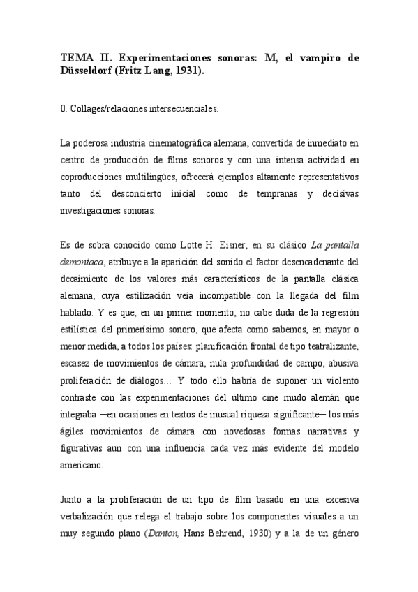 EXAMEN: Fragmento Hitchcock, fragmento primitivo con integración narrativa, primitivo, En el balcón vacío, Chaplin primera vez que habla.