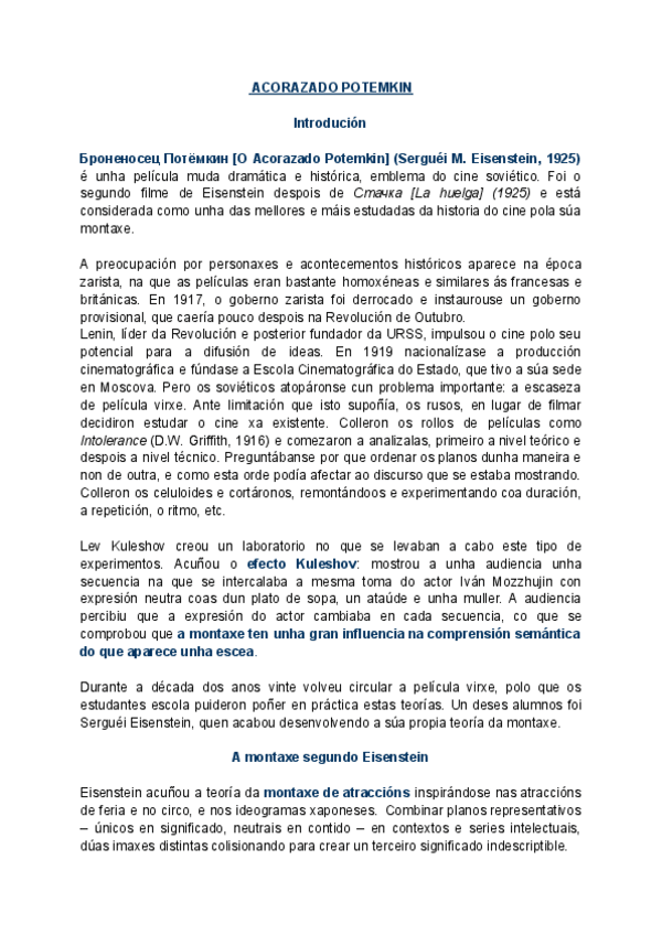 Traballo de análise de Acorazado Potemkin, pero tamén inclúe teoría xeral sobre o cine soviético.