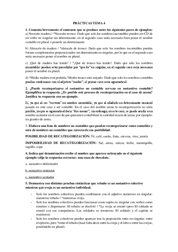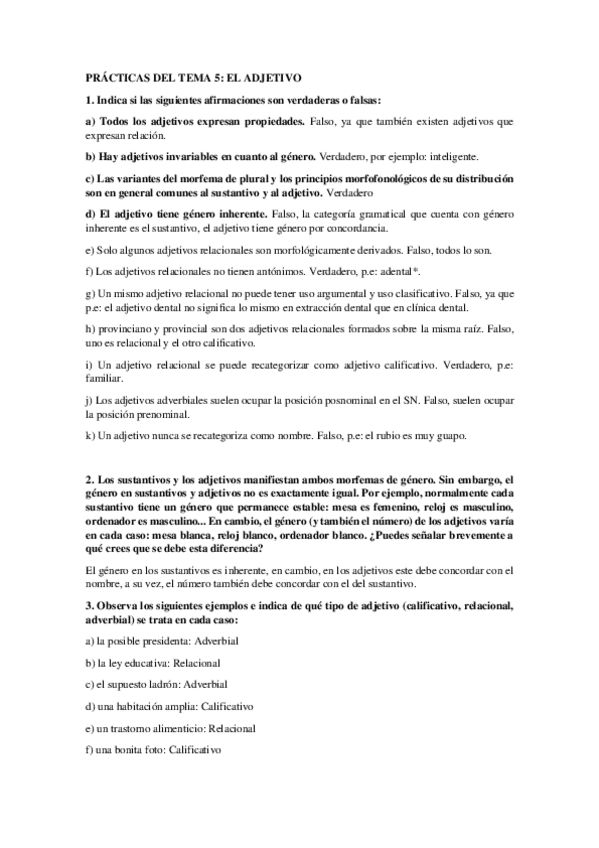 Prácticas morfología del español