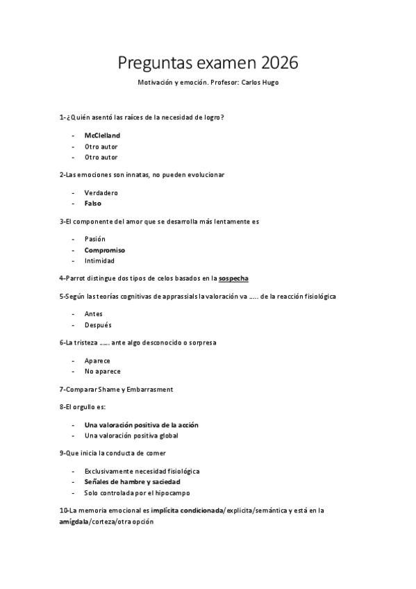 Recopilación de preguntas examen motivación y emoción 2026 de Carlos Hugo