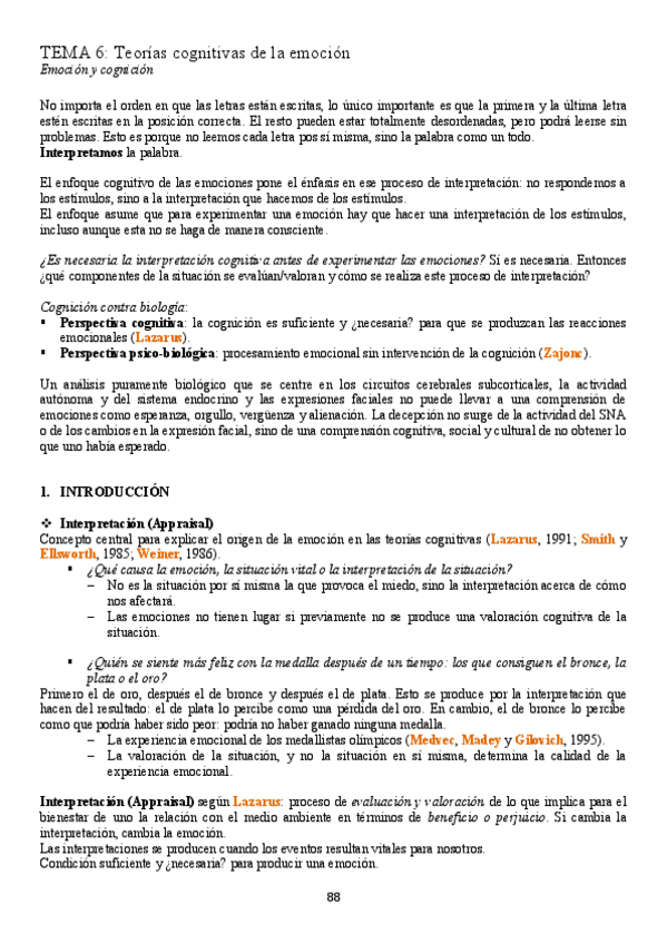 Bloque II (a): Bases cognitivas de la emoción