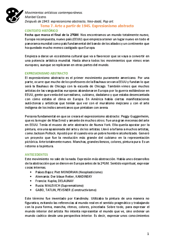 He publicado nuevos apuntes de 3º Movimientos Artísticos Contemporáneos: ARTE-1.pdf