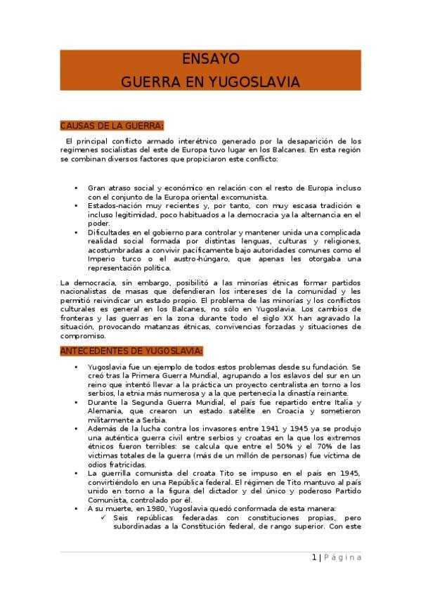 ENSAYOS PARA EL EXAMEN: GUERRA FRÍA, CONFLICTO ÁRABE-ISRAELÍ, Y YUGOSLAVIA. + PREGUNTAS CORTAS