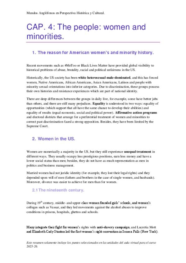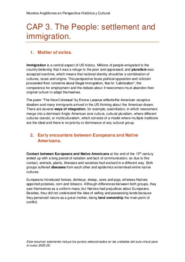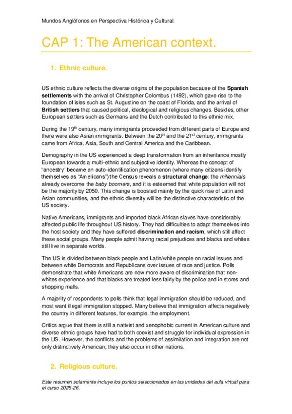 Temario resumido de la asignatura Mundos Anglófonos en Perspectiva Histórica y Cultural. Los resúmenes están hechos siguiendo la organización del libro, que no coincide con la distribución de las unidades del curso virtual. En el caso de los apuntes de B
