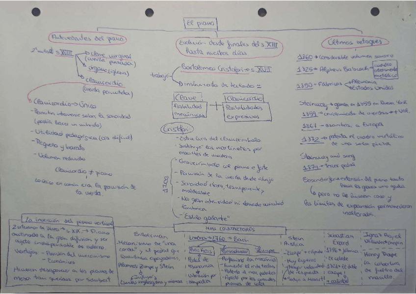 Esquema sobre la historia del piano.