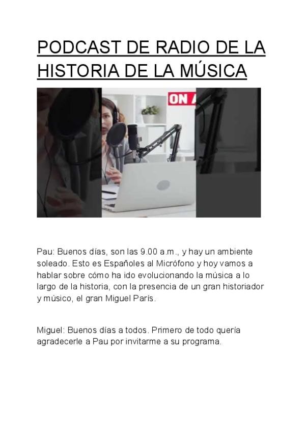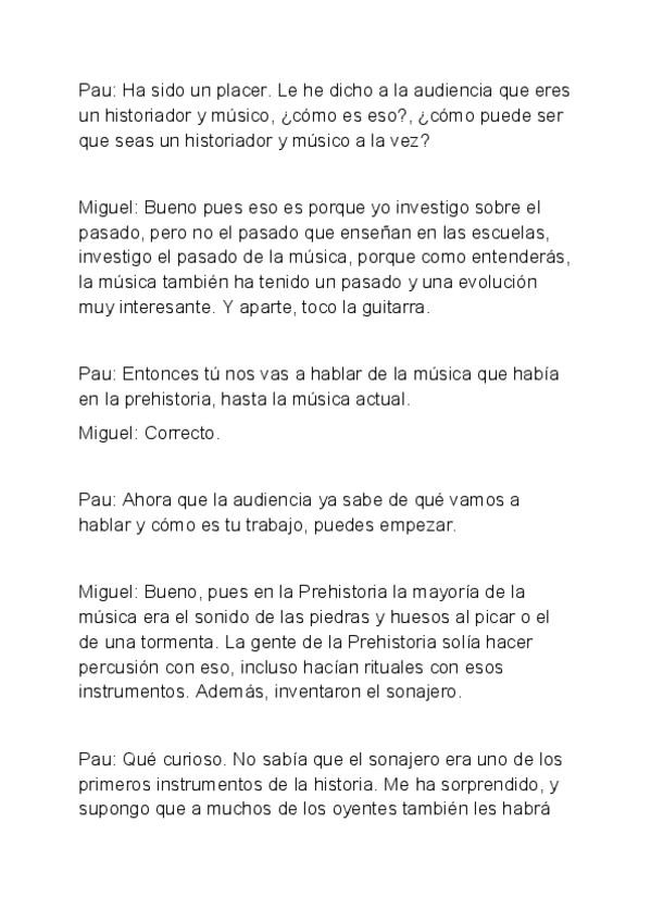 Història de la música: 1. Prehistòria 2. Edat Antiga 3. Edat Mitjana 4. Renaixement 5. Barroc 6. Classicisme 7. Romanticisme 8. Segle XX 9. Possibles preguntes i respostes