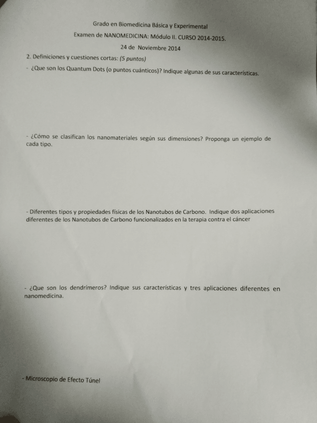 He publicado nuevos examenes de 4º Nanomedicina: Examen Modulo II (2014-2015)