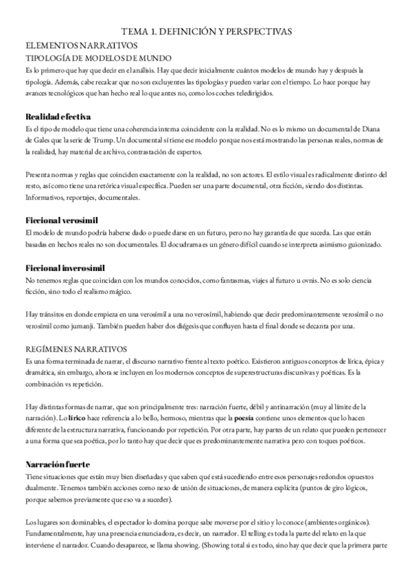 Apuntes y análisis Narrativa