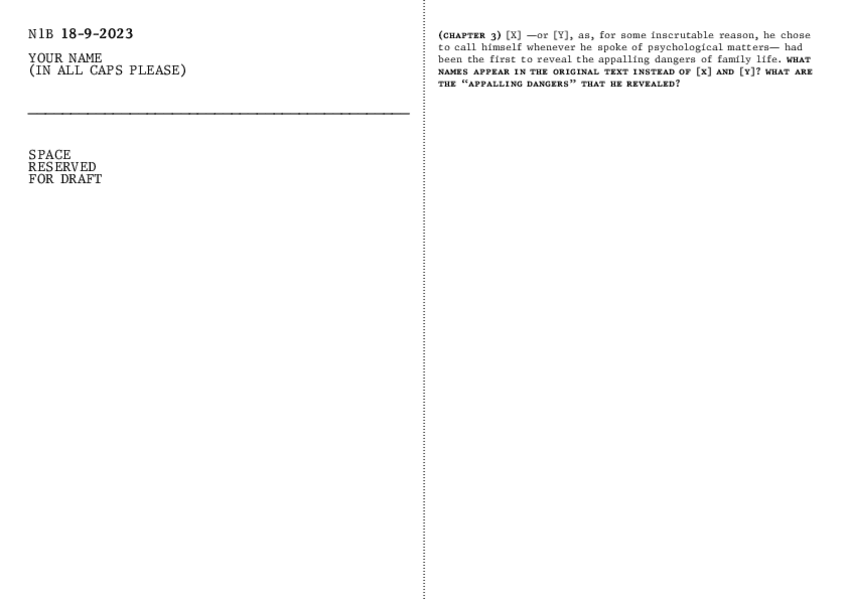 Buenos días. ¿Alguien que se preste a hacer el trabajo de Narrativa 1B? Con el nuevo formato de Notion que ha implementado Galán. Hablamos de precio!! Deja abajo tu correo/número para contactar contigo