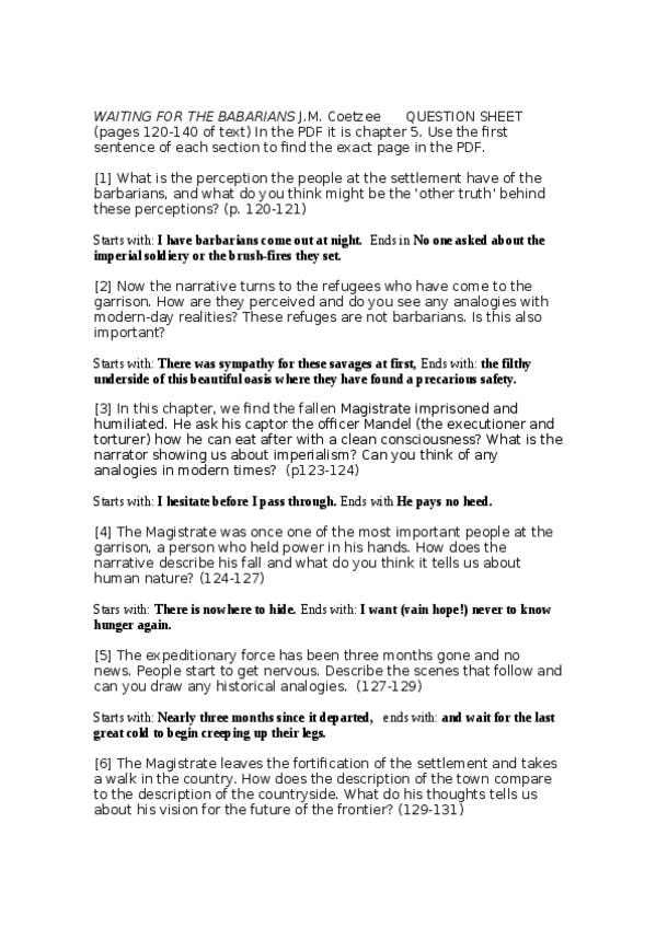 He publicado nuevos apuntes de 4º Narrativa Inglesa y Norteamericana Ii: WAITING-FOR-THE-BABARIANSquestion-sheet-for-PDF.doc