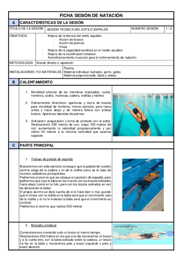 He publicado nuevos trabajos de 3º Natación: sesiones técnicas estilos