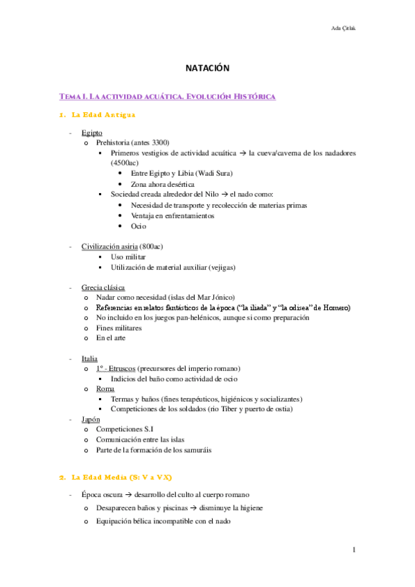 Temario Natación (2025/2026), 1º Parcial (Temas: 1, 2 y 3). Apuntes con temario completamente detallado de las diapositivas de la profesora, viene todo explicado con definiciones, imágenes (de diapositivas) y ejemplos. Al ser unos apuntes tan extensos mi