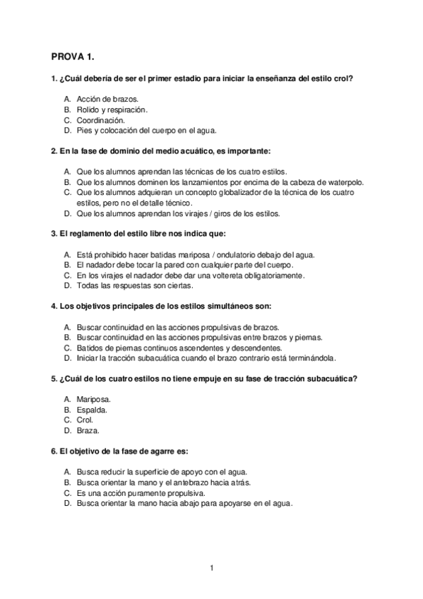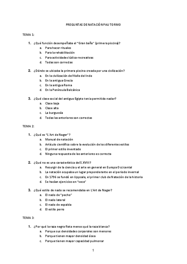 Muchas de estas preguntas cayeron en el examen 2 parcial de natación