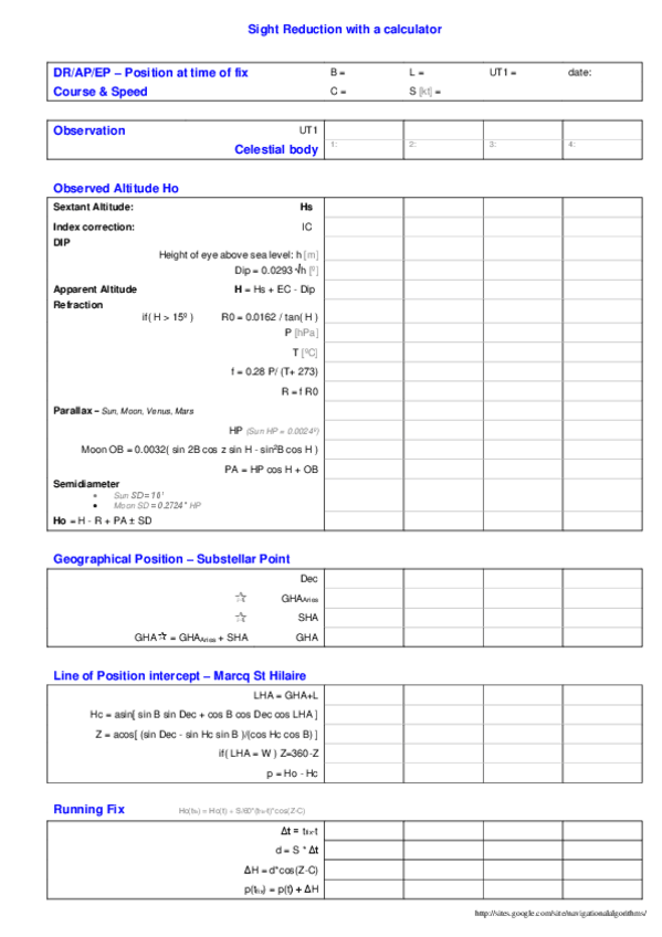 He publicado nuevos ejercicios de 2º Navegación II: Celestial-Navigation-with-a-Calculator.en.pdf