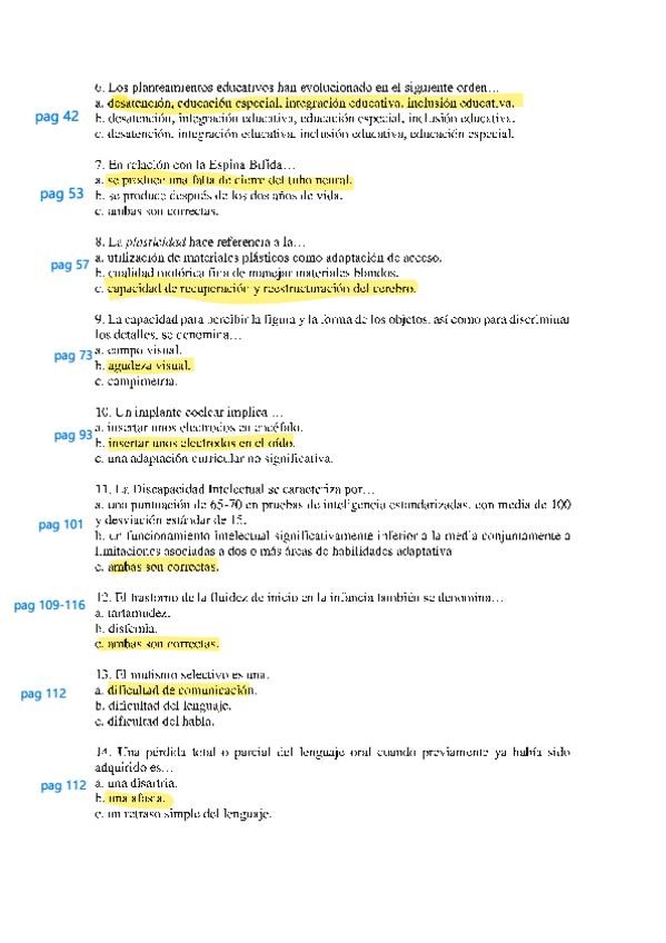 examen enero 26 con anotaciones para recordar las respuestas, los temas y páginas en los que aparece la respuesta correcta