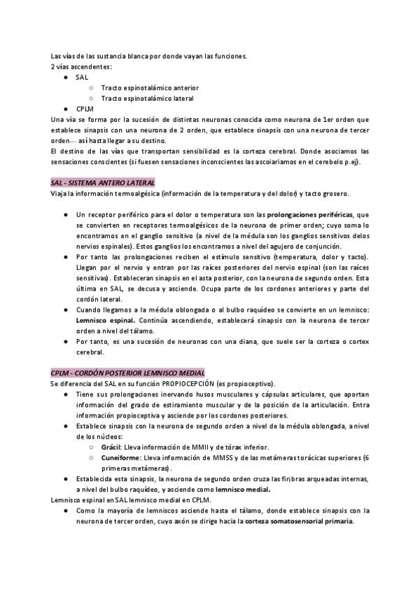 Conceptos importantes de todos los temas de NEUROANATOMÍA