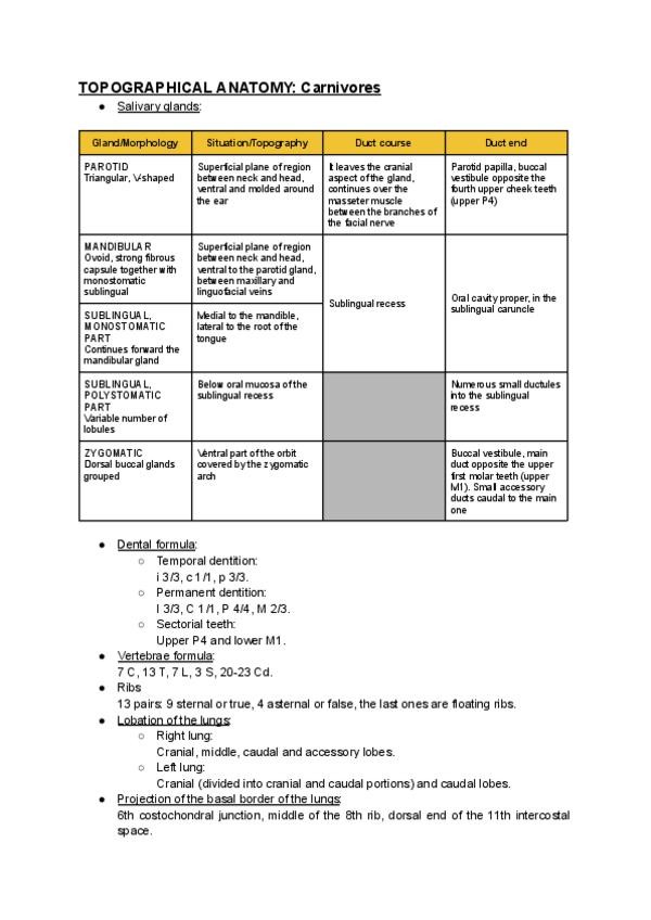 Resumen de las topografías vistas en perro, gato, caballo y rumiantes