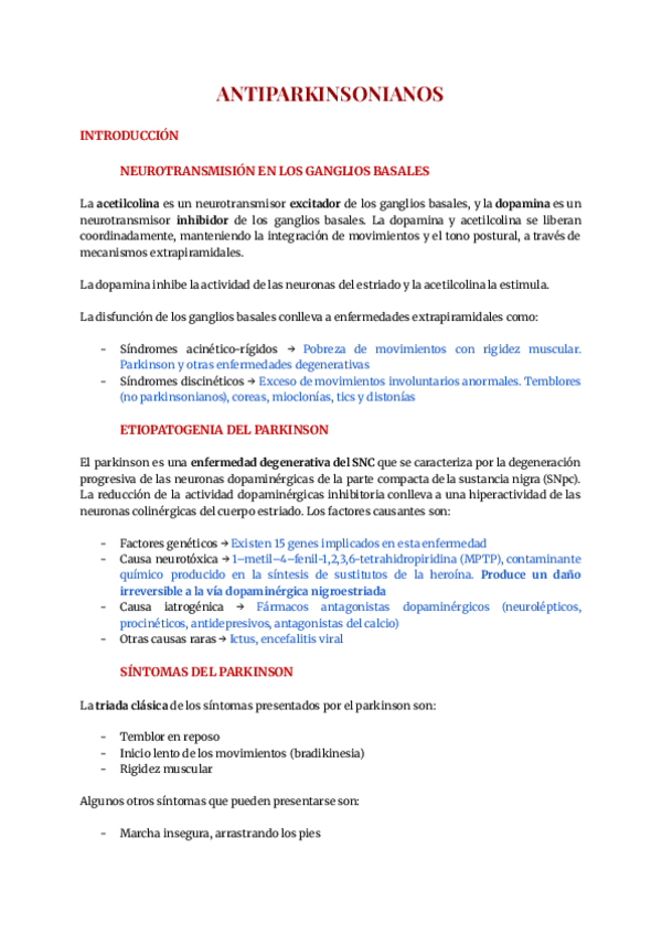 He publicado nuevos apuntes de 4º Neurobioquímica y Psicofarmacología: T9-Neurofarm.-Antiparkinsonianos.-2o-Parcial.pdf