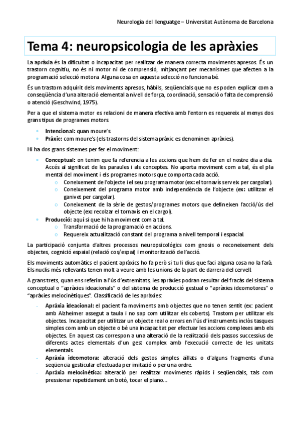 PDF de l'últim tema de Neurologia del llenguatge sobre les apraxies.
