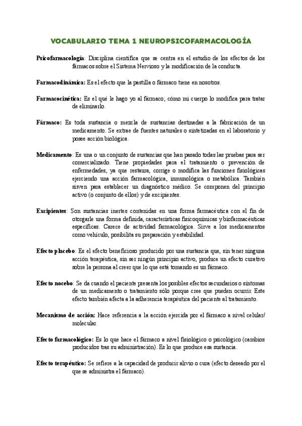 VOCABULARIO DE TODOS LOS TEMAS DE NEUROPSICOFARMACOLOGÍA