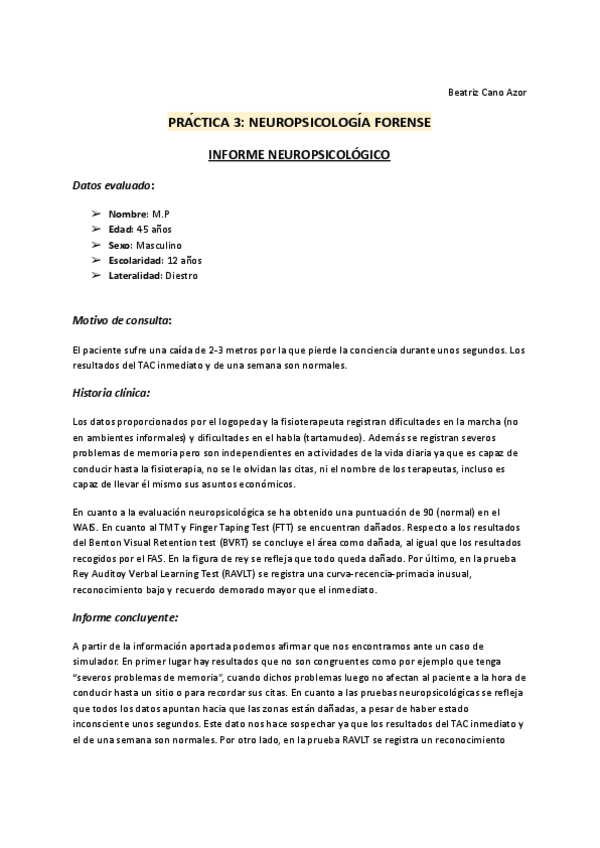 He publicado nuevos practicas de 4º Neuropsicología Clínica: prácticas 1-3 Marisa