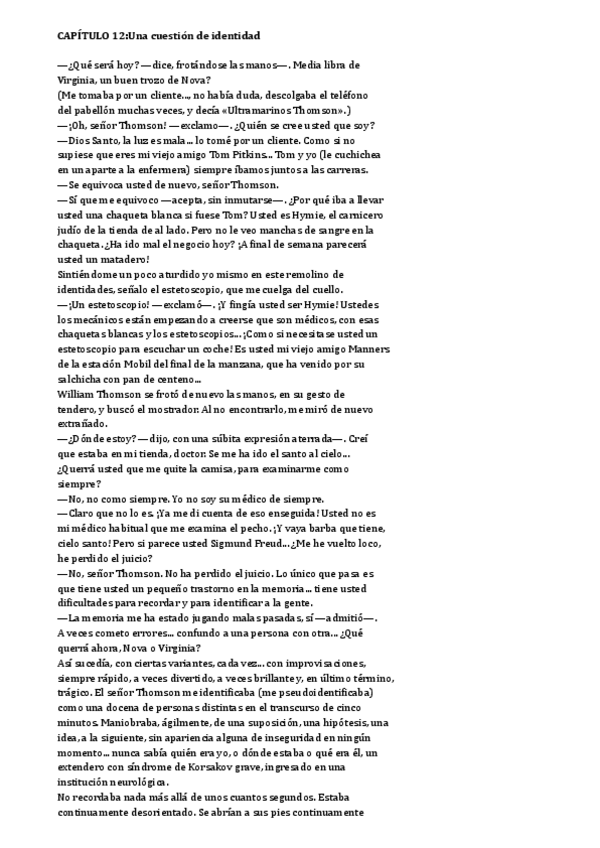 Este pdf presenta 3 erratas: 1- la memoria declarativa está alterada y la procedimental está conservada 2- en la teoría de recuperación: amnesia anterógrada (AA) (pone atención retrógrada (AA)) 3- ha perdido la memoria episódica y mantiene la semántica