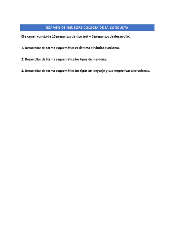 He publicado nuevos examenes de 1º Neuropsicología de la Conducta: Examen Neuropsicología de la Conducta