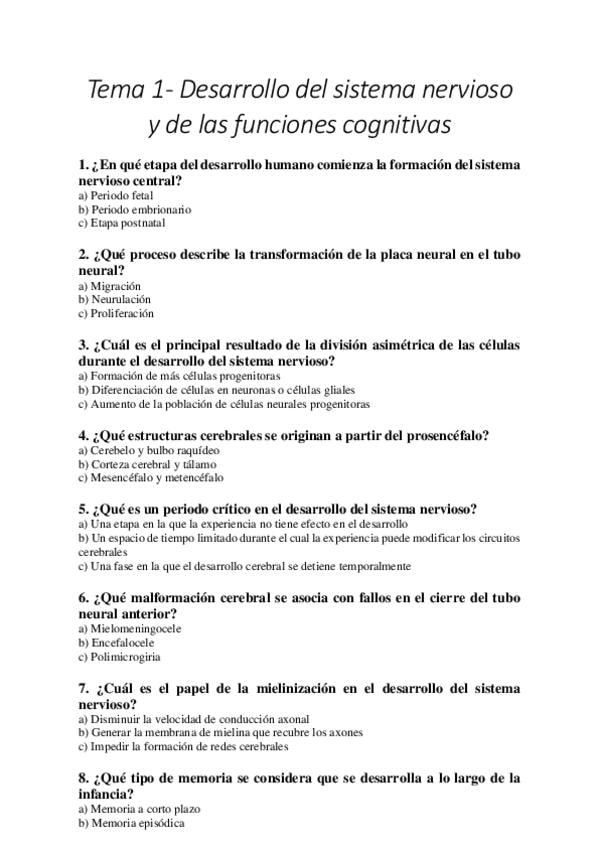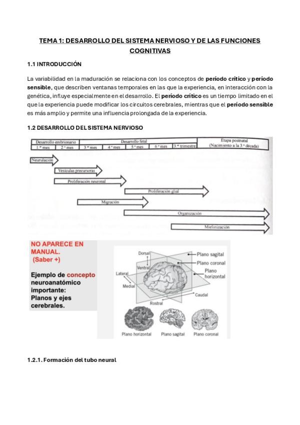 TEMA 1: DESARROLLO DEL SISTEMA NERVIOSO Y DE LAS FUNCIONES COGNITIVAS