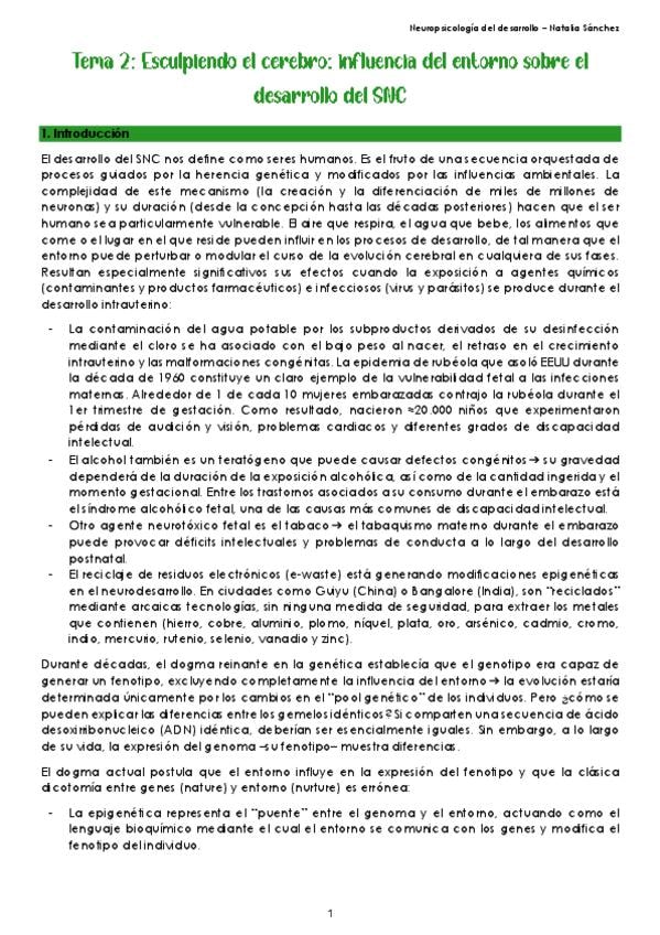 TEMA 2: ESCULPIENDO EL CEREBRO: INFLUENCIA DEL ENTORNO SOBRE EL DESARROLLO DEL SISTEMA NERVIOSO CENTRAL