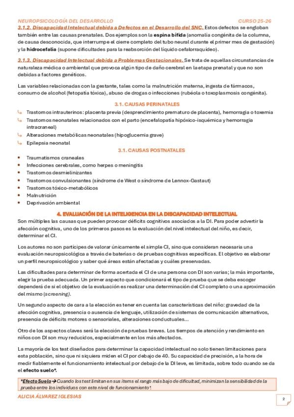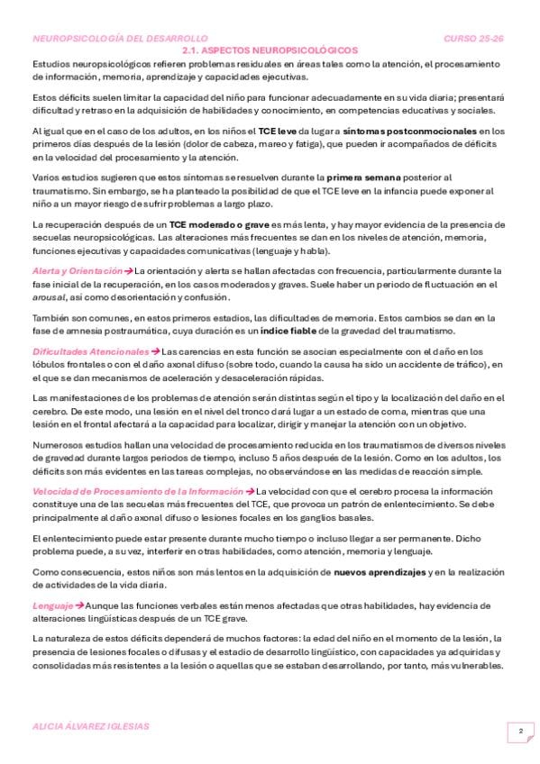 Apuntes del Tema 2 de Neuropsicología del desarrollo, actualizados con el libro 2026
