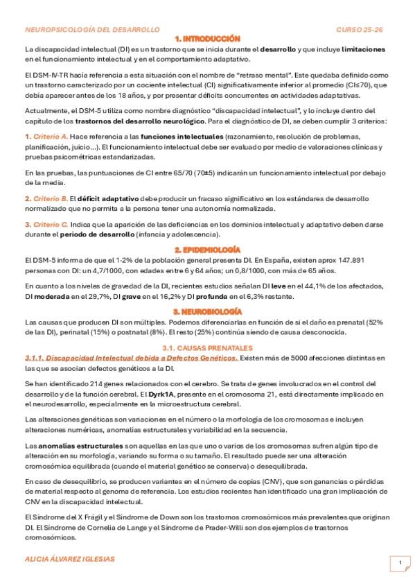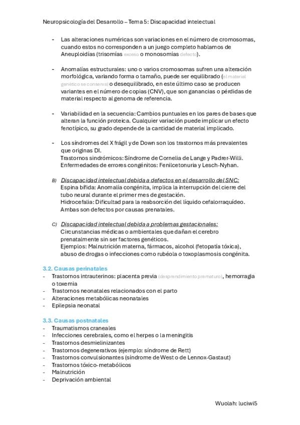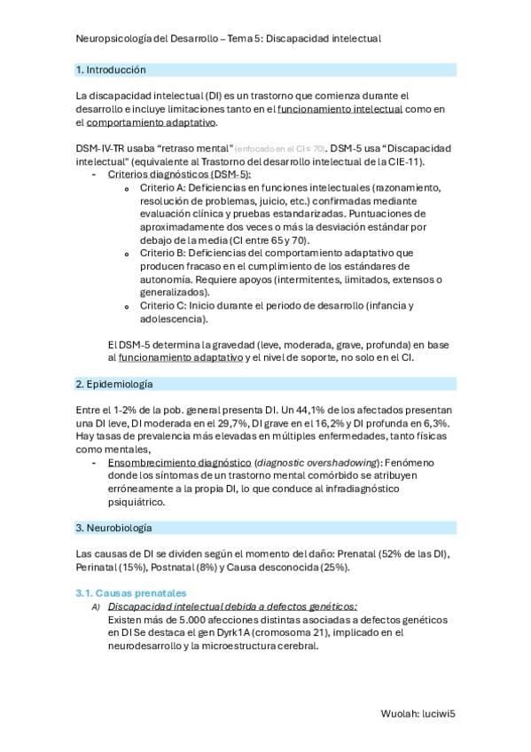 Resumen sobre el Tema 5, Discapacidad Intelectual, de Neuropsicología del Desarrollo