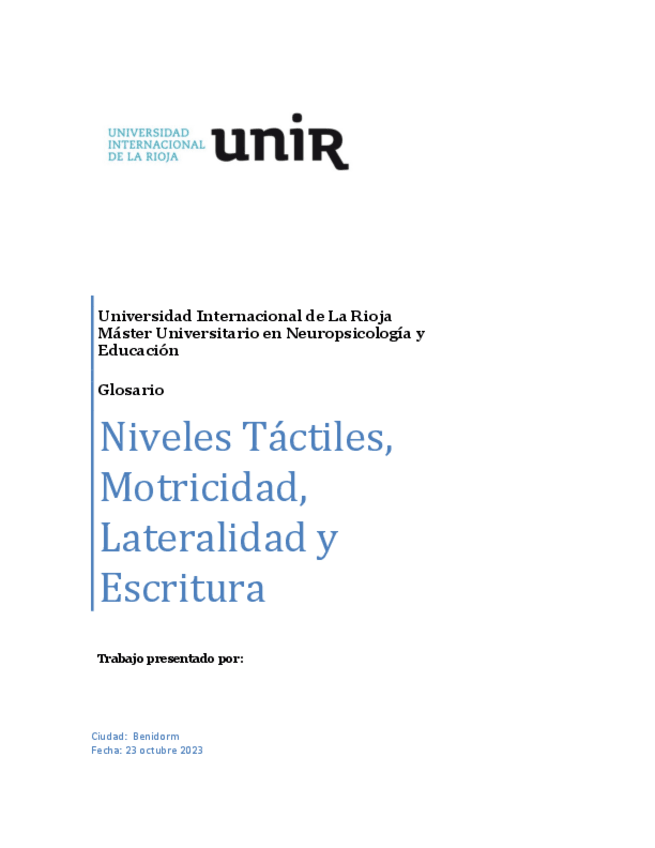 He publicado nuevos practicas de 1º Niveles Táctiles, Motricidad, Lateralidad y Escritura: trabajo-glosario.pdf