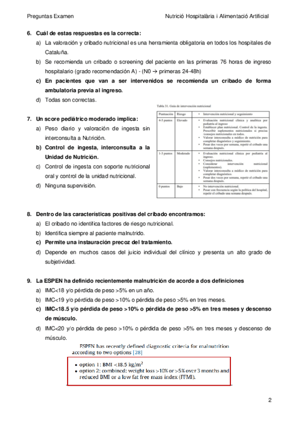 He publicado nuevos examenes de 4º Nutrició Hospitalària i Alimentació Artificial: Recopilacio-preguntes-test--curtes.pdf