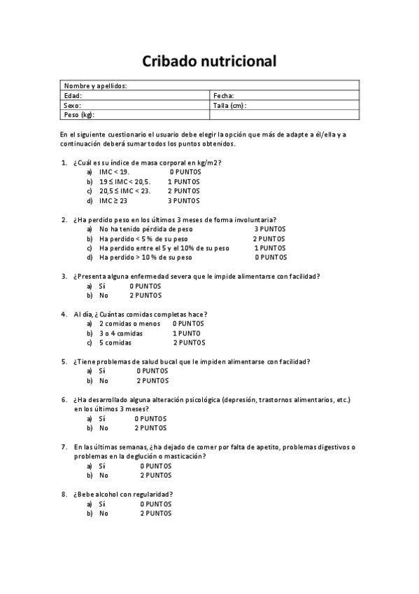 He publicado nuevos practicas de 1º NUTRICIÓN, ALIMENTACIÓN Y DIETÉTICA: Practica 2. Cribado nutricional.pdf