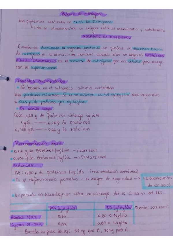 Apunte/resumen de: Balance de nitrógeno, Hidratos de carbono, Lípidos