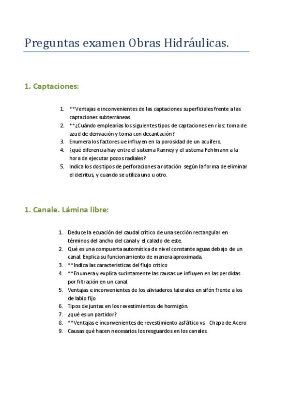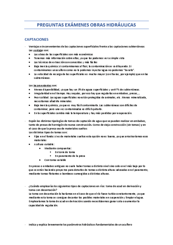 He publicado nuevos examenes de 4º Obras Hidráulicas: PREGUNTAS-EXAMENESOBRAS-HIDRAULICAS.pdf