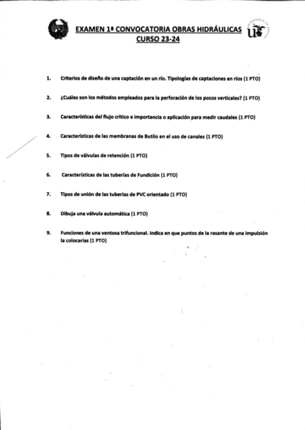 He publicado nuevos examenes de 4º Obras Hidráulicas: 1Convocatoria-OH-23-24.pdf