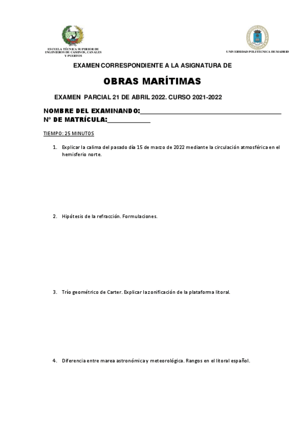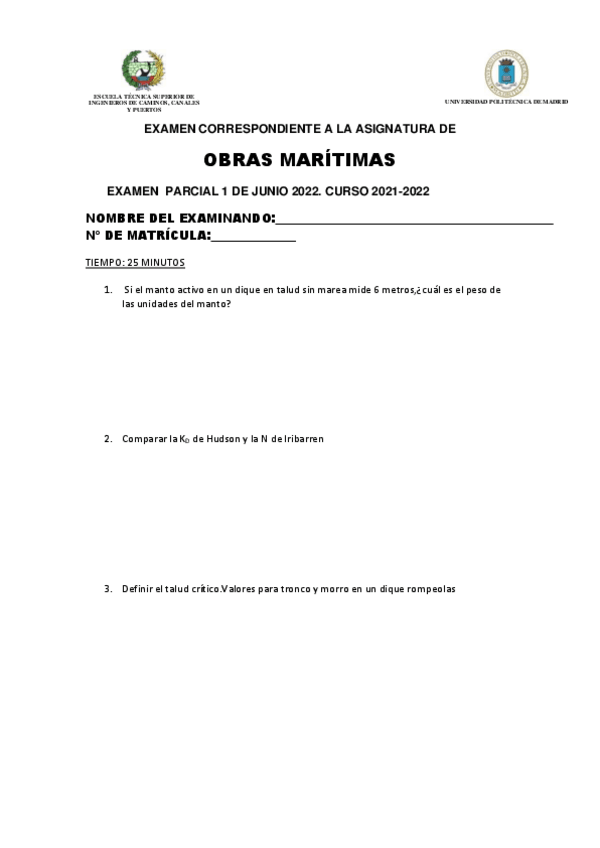 He publicado nuevos examenes de 3º Obras Marítimas: Preguntas cortas 2º parcial.pdf