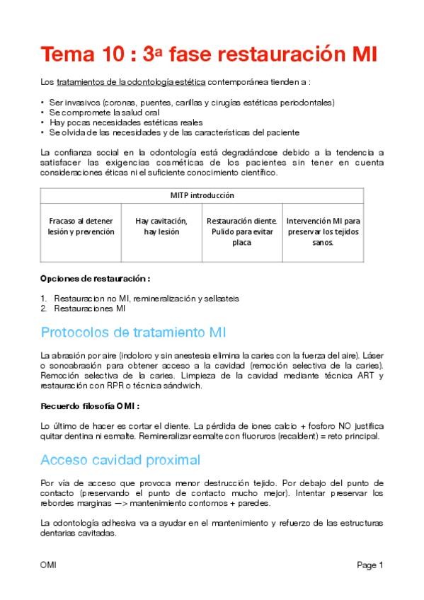 He publicado nuevos apuntes de 4º Odontología Mínimamente Invasiva: Apuntes-OMI.pdf
