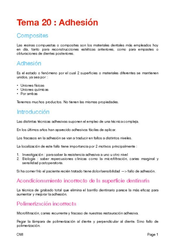 He publicado nuevos apuntes de 4º Odontología Mínimamente Invasiva: Tema-20--Adhesion.pdf