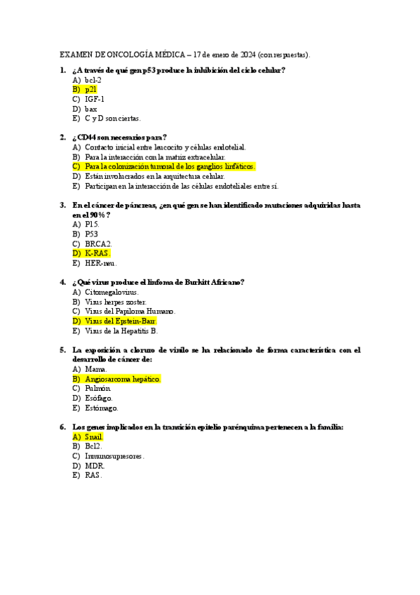 EXAMEN ENERO 2024 - Oncología médica