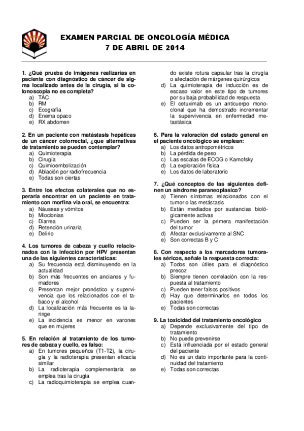 He publicado nuevos examenes de 4º Oncología Médica: PREGUNTAS-ONCOLOGIA.pdf