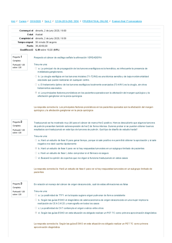 Exámenes ONCOLOGÍA 5o