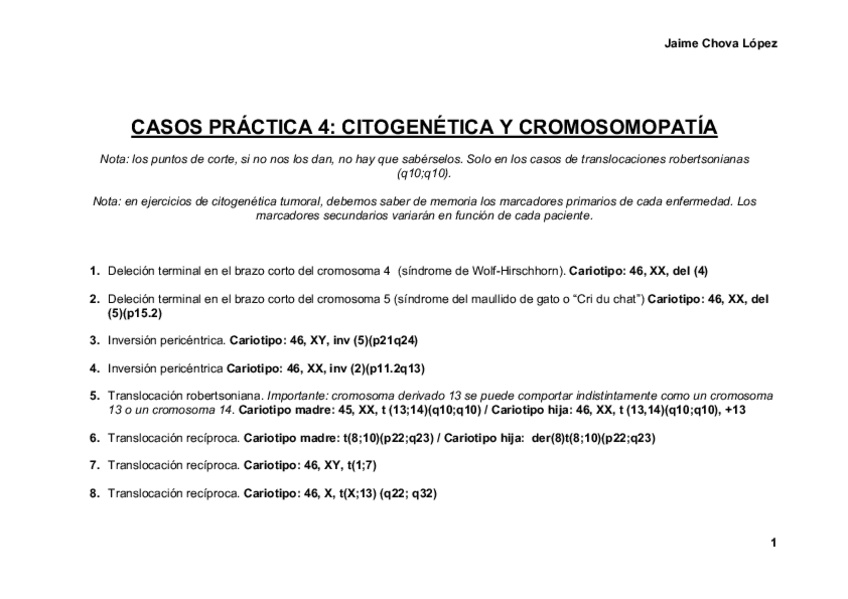 Práctica 4 Genética Médica - Resolución de problemas de citogenética